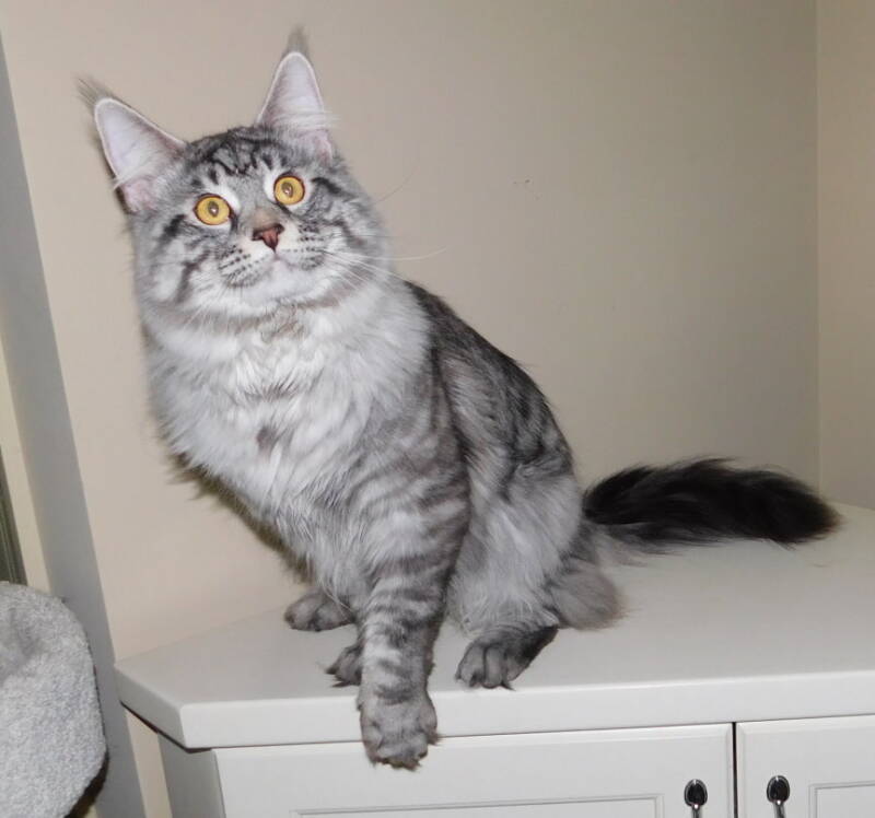 "Shira" is new here as I have bought her back from Terressa who had to stop being a breeder for awhile. This lovely girl is so pretty and fun. She is trying to fit into my cattery and so far, nobody is being mean to her. She has huge poly paws and a very pretty face. Looking forward to later breeding her and getting some really nice babies from her.
