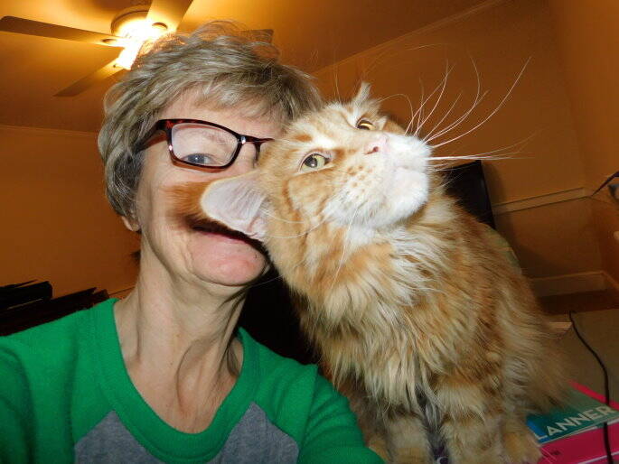 These photos show our two "old" kitties who have since passed away. We miss them both so much. Tony left us a year ago, Christmas and sweet Breezy just left first of May 2025. Our home now does not have a cat to greet you at the door but hoping by end of the year I will have a new one chosen. I am retiring from breeding (after 40 years of just Maine Coons) early 2026. Keep an eye on spay/neuter page for retired ones, as well as kittens available page to see who becomes available.