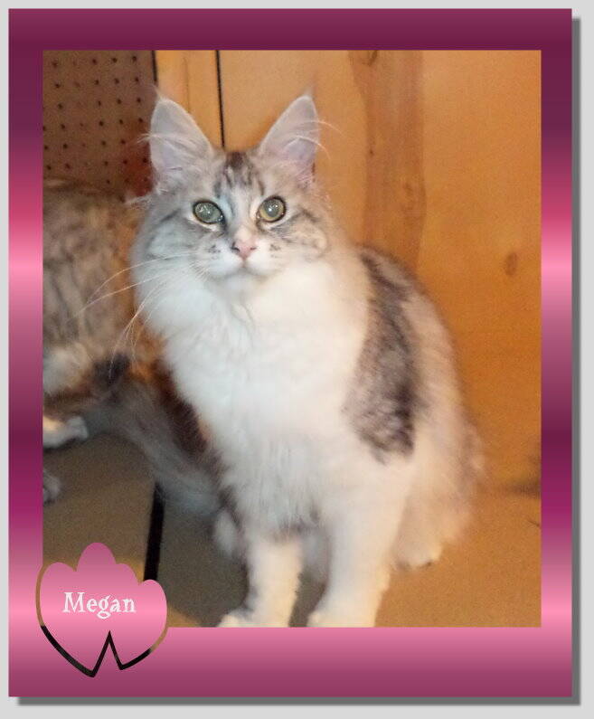 Megan is about as sweet as they come! She will follow you purring all the time. she is of age now to leave us (as of11/15/25) and can really warm your home up with her affections. She is quiet and gentle and gets along with other kitties well. She loves to eat the raw meat mix, so at first, she will need to stay on that while you switch her over some time (if you choose to do that).