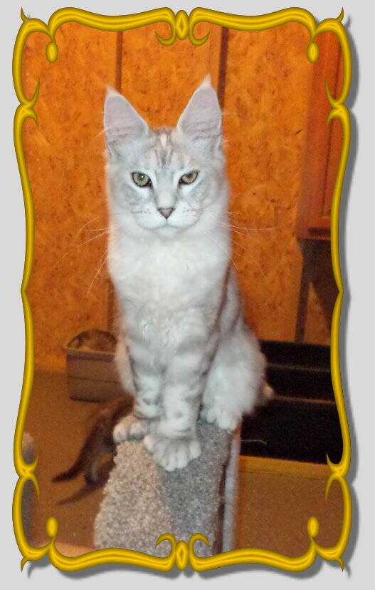 After breeding for 40 years I had made plans to fully retire. This young lady was my "keeper" right from her birth. I cannot fully explain why but she was just special as well as had my favorite cats as her parents. (Eva x Denali) I was later unable (and unwilling?) to fully retire so then I decided to keep Eva and her 2 daughters, Tilly as first choice. She is almost a clone of her beautiful large mama Eva, same color, same paws and same funny personality. How could I lose?